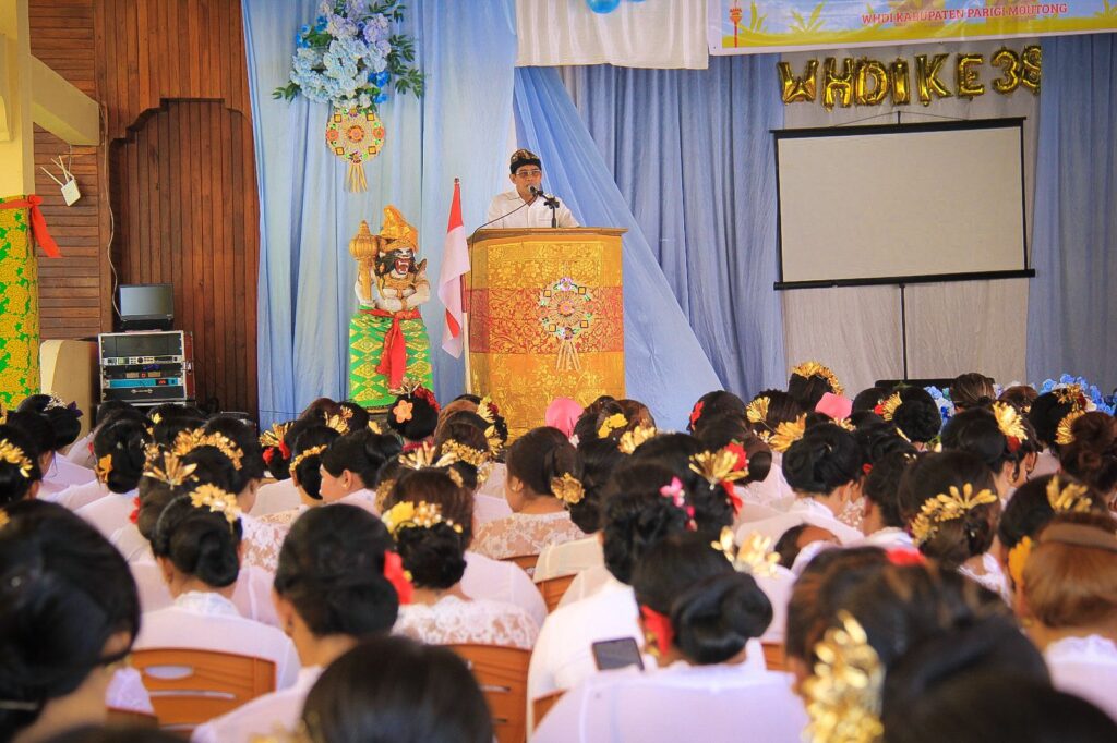 PARIGI MOUTONG – Bupati Parigi Moutong, H. Erwin Burase menghadiri acara peringatan Hari Ulang Tahun (HUT) Wanita Hindu Dharma Indonesia (WHDI) ke-38 Kabupaten Parigi Moutong tanggal 12 Februari, yang dirangkaikan dengan menyambut Peringatan Hari Kartini tanggal 21 April mendatang. Bertempat di Aula Yayasan Saraswati, Desa Tolai. Minggu (15/2/2026).